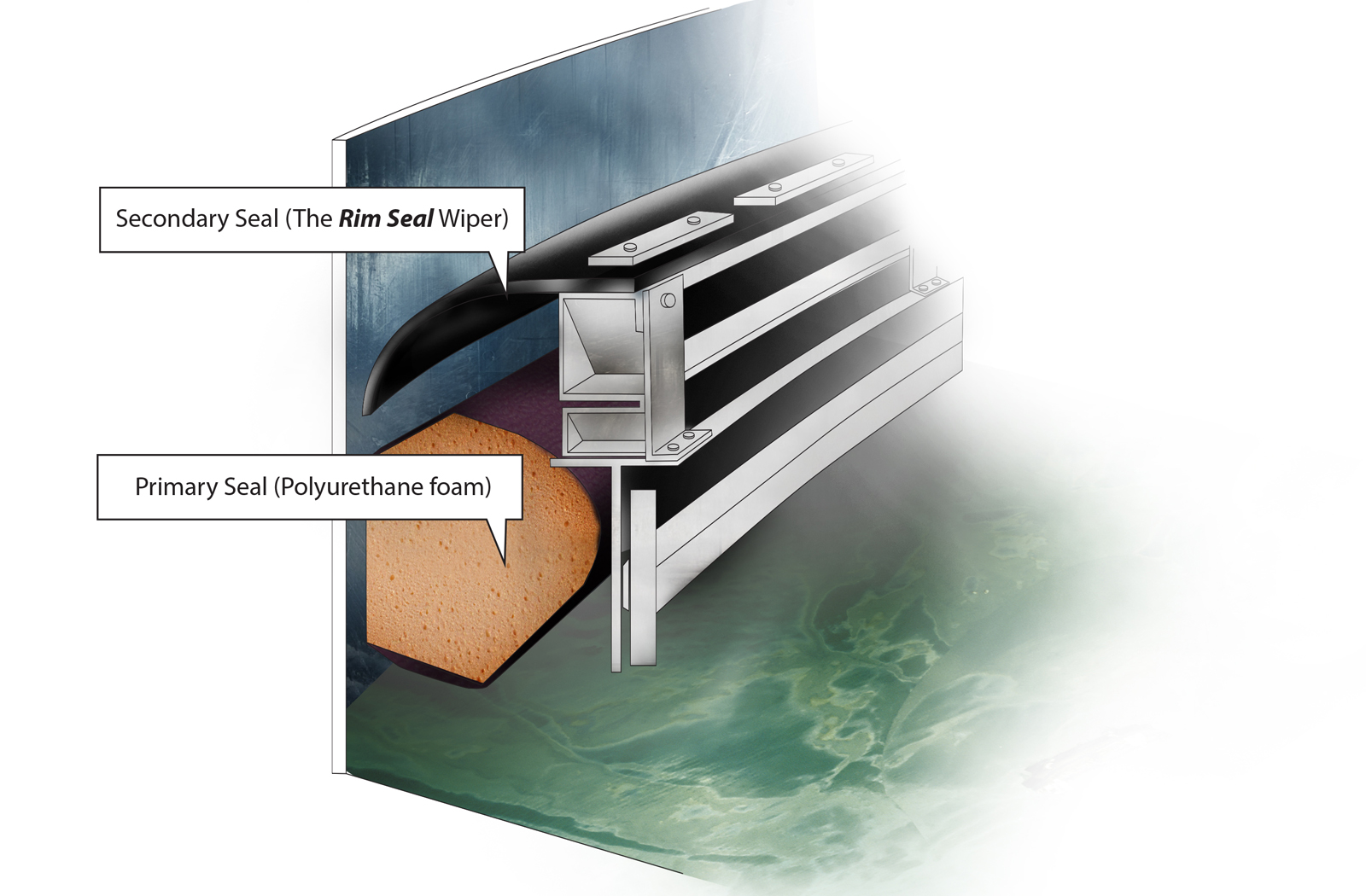 The direct contact of the Rim Seal to the inner wall of the storage tank provides the strongest and most dependable seal against vapor emission and chemical evaporation.